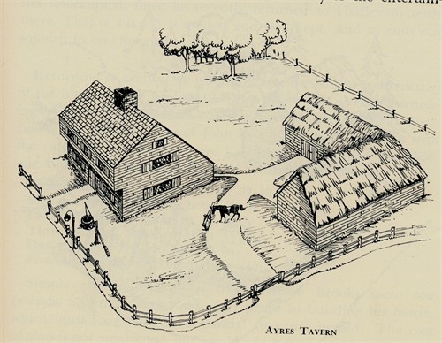 Probably from the time of construction of his home and establishment of himself at Quaboag, he provided accommodations for travelers. Although his first actual license for maintaining a tavern was not granted until the Fall of 1671, the following entry leads us to believe that he offered food and shelter prior to that time. On Jun 28, 1671, the following: ‘By my expense at his house last summer and once this Spring 00 12 00’. That Ayres was a respected planter is confirmed by the following found in the Record of Hampshire County Court for Sep 26, 1671: ‘Goodman Ayres of Quabauge licensed to sell wine, etc.’  This permit was renewed on Sep 24, 1672: ‘Goodman Ely of Springfield hath his license continued for the year ensuing to keep ordinary and to sell wines and strong liquors, providing he keep good rule in his house. Also Goodman Ayres of Quaboag hath his license continued on the same terms’ . And for the last time on Sep 29, 1674: ‘John Aires of Brookfield hath his license renewed for the year ensuing’.   As we know, this tavern was still in operation at the time of the Indian assault on August 2, 1675, and being the strongest building at the Plantation, was converted into a fortified house to provide protection during the siege which followed.