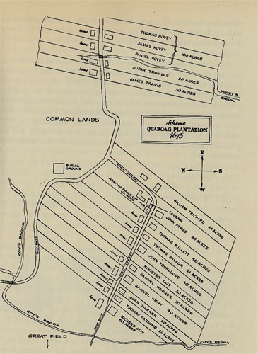 Captain John, as he was known at Ipswich, came to Quaboag Plantation before May 1667. The time of his removal can be estimated fairly accurately from known facts. He was named one of a prudential committee for the new plantation in the Regrant of 1667. At the time of his removal, he has his full family, consisting of seven sons and one daughter, all of whom came with him to Quaboag. They were: John Jr., about 18; Samuel, about 17; Thomas, 15; Joseph, 12; Susanna, about 11; Edward, 9; Mark, 6; and, Nathaniel, under 3 years of age.