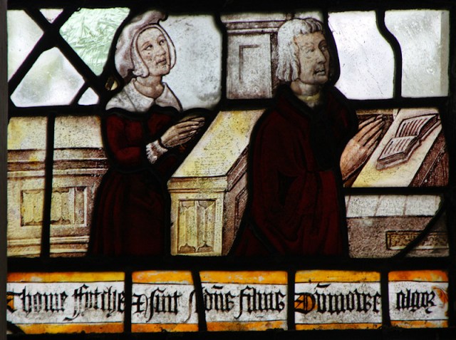 Thomas and Agnes are also commemorated in a stained glass window in the same church. This window, and a second showing their son William and his first wife, Elizabeth, were probably paid for by William, who had the advowson of the church (the right to be the patron of the church and to recommend its clergyman) from King Henry VIII.