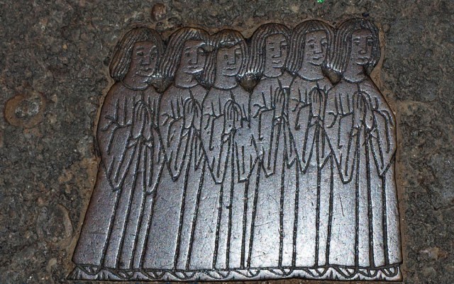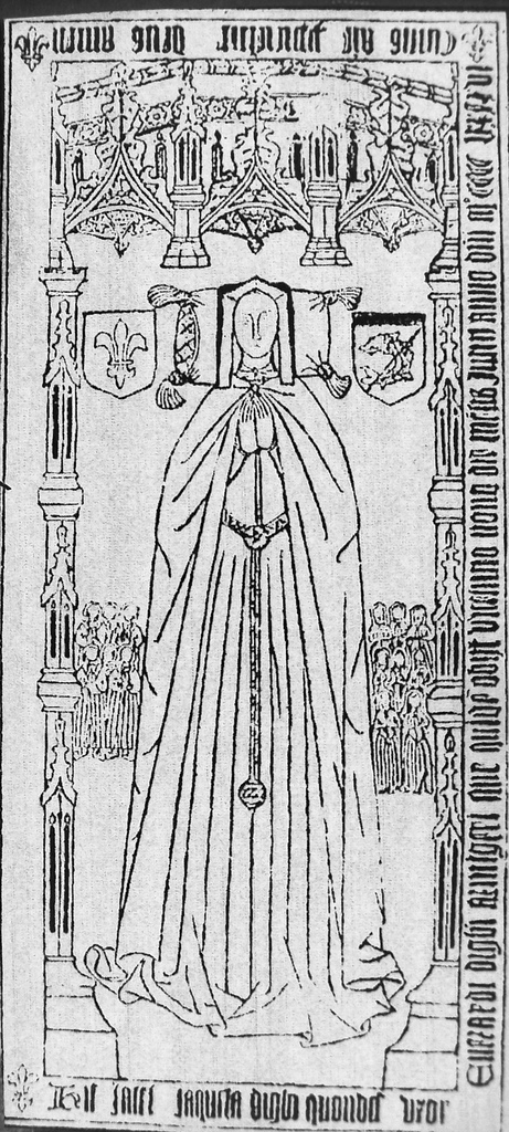 Agnes Digby — c. 1479 Slab fragment of a lady wearing a steeple headdress -lost Inscription is recorded as