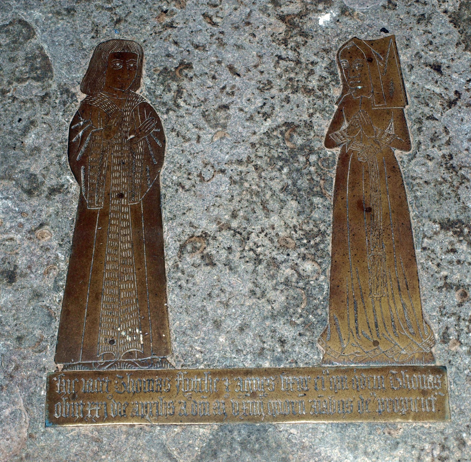 “Here lie Thomas ffytch and Agnes his wife which same Thomas died the 21st day of April in the year of our Lord 1514. On whose souls may God have mercy.”