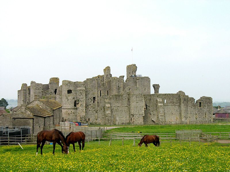 Middleham Castle in Wensleydale, in the county of North Yorkshire, was built by Robert Fitzrandolph, 3rd Lord of Middleham and Spennithorne, commencing in 1190. It was built near the site of an earlier motte and bailey castle. In 1270 it came into the hands of the Neville family, the most notable member of which was Richard Neville, 16th Earl of Warwick, known to history as the “Kingmaker”, a leading figure in the Wars of the Roses. Following the death of Richard, Duke of York at Wakefield in December 1460, his younger sons, George, Duke of Clarence and Richard, Duke of Gloucester, came into Warwick’s care, and both lived at Middleham with Warwick’s own family. Their brother King Edward IV was imprisoned at Middleham for a short time, having been captured by Warwick in 1469. Following Warwick’s death at Barnet in 1471 and Edward’s restoration to the throne, his brother Richard married Anne Neville, Warwick’s younger daughter, and made Middleham his main home. Their son Edward was also born at Middleham and later also died there.