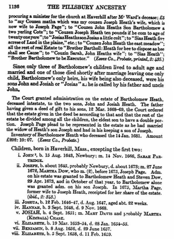 Bartholomew Heath 1 — Source: Ancestry of Charles Stinson Pillsbury and John Sargent Pillsbury (1938)