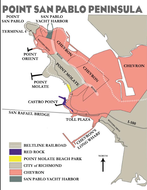 The majority of land on the San Pablo Peninsula is owned by Chevron, with their refinery operations on the east side of the San Pablo Peninsula ridge.