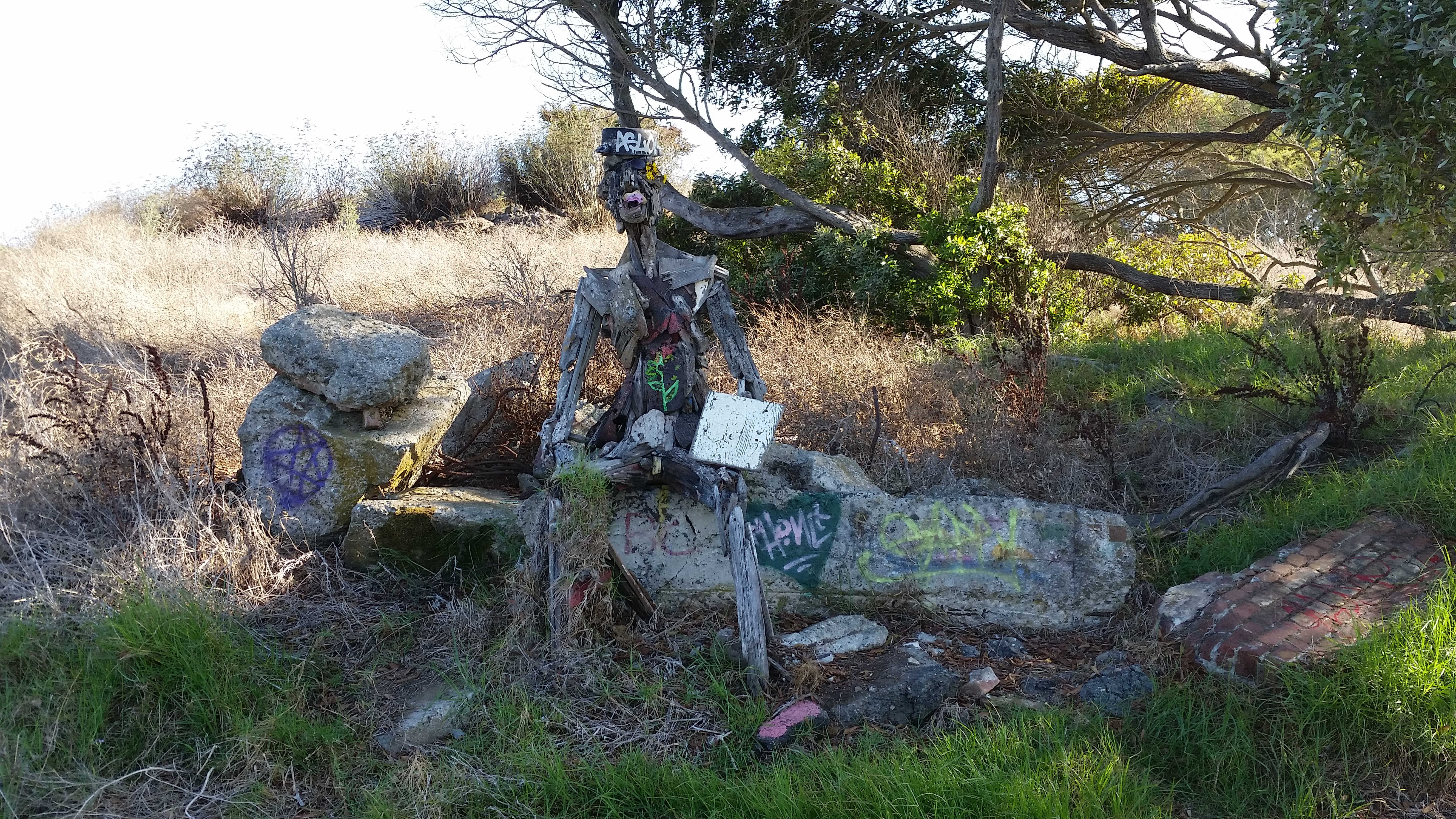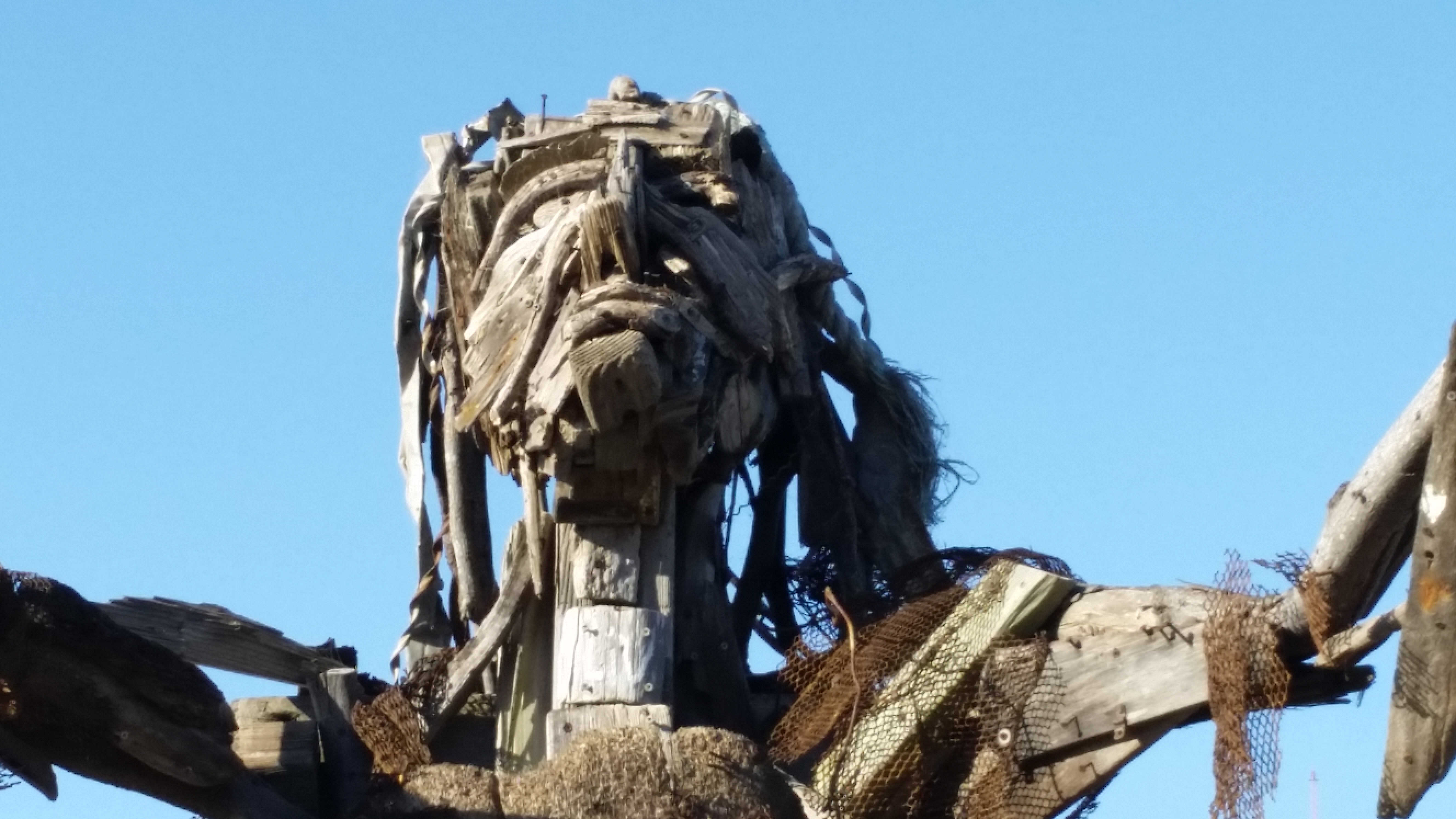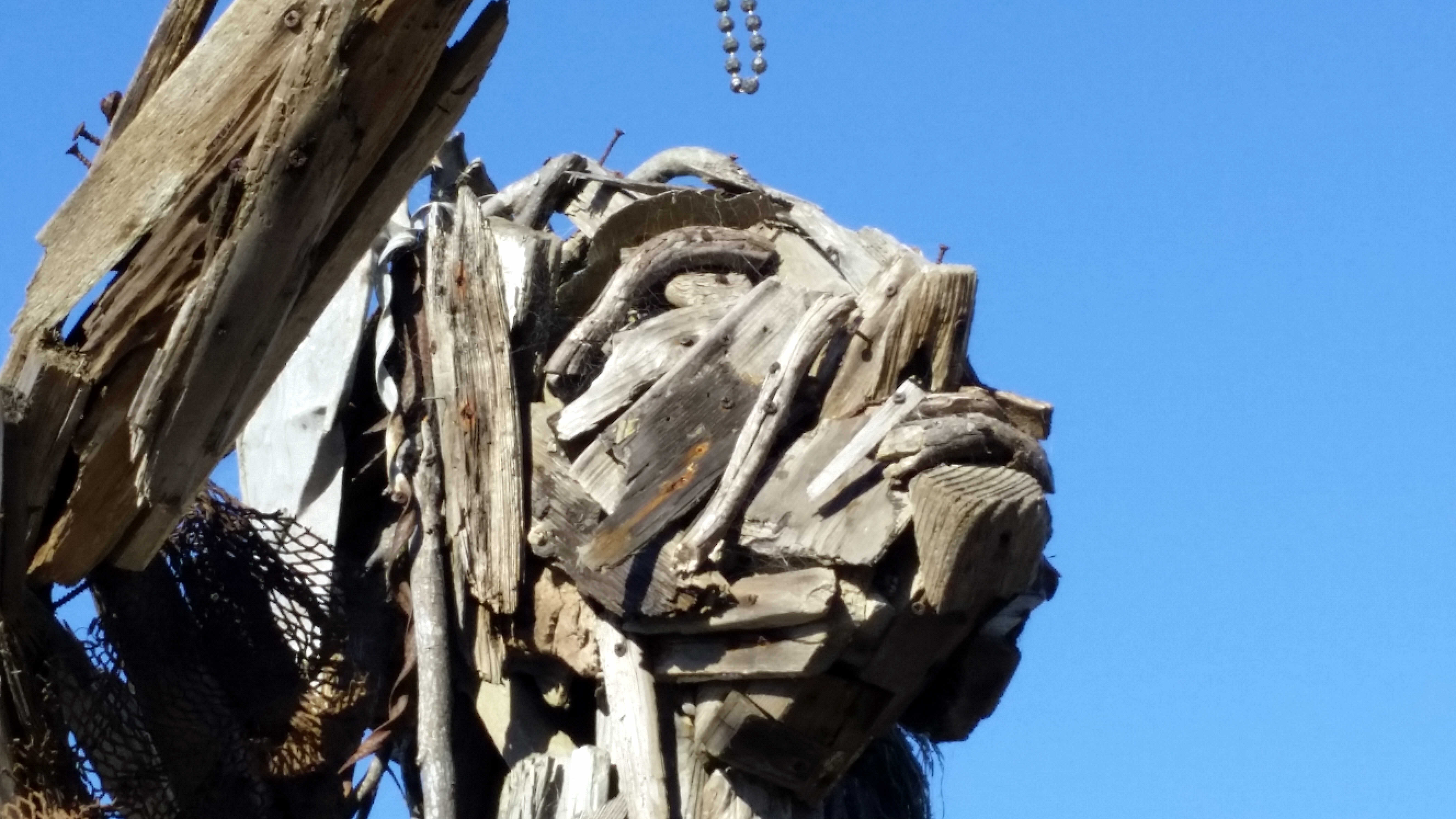 In the midst of a complicated stew of people and competing interests, a multi-authored creative vision united in spirit has arisen from this mound of detritus. The art that stands and dangles and juts all over the Bulb, just like the art that used to grace the Emeryville Mud Flats, is a monument to the free-wheeling, nature-centered, found-object California art aesthetic.