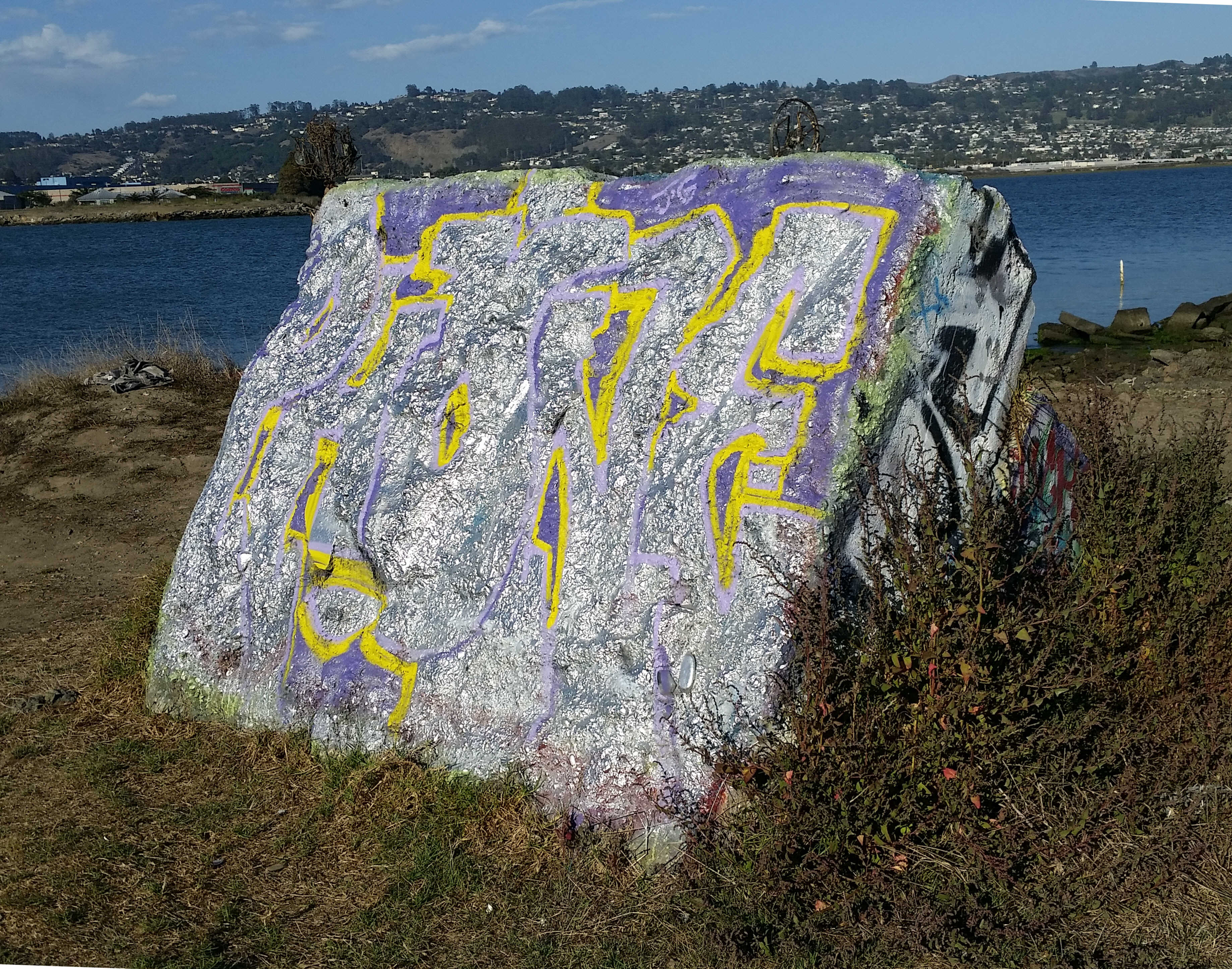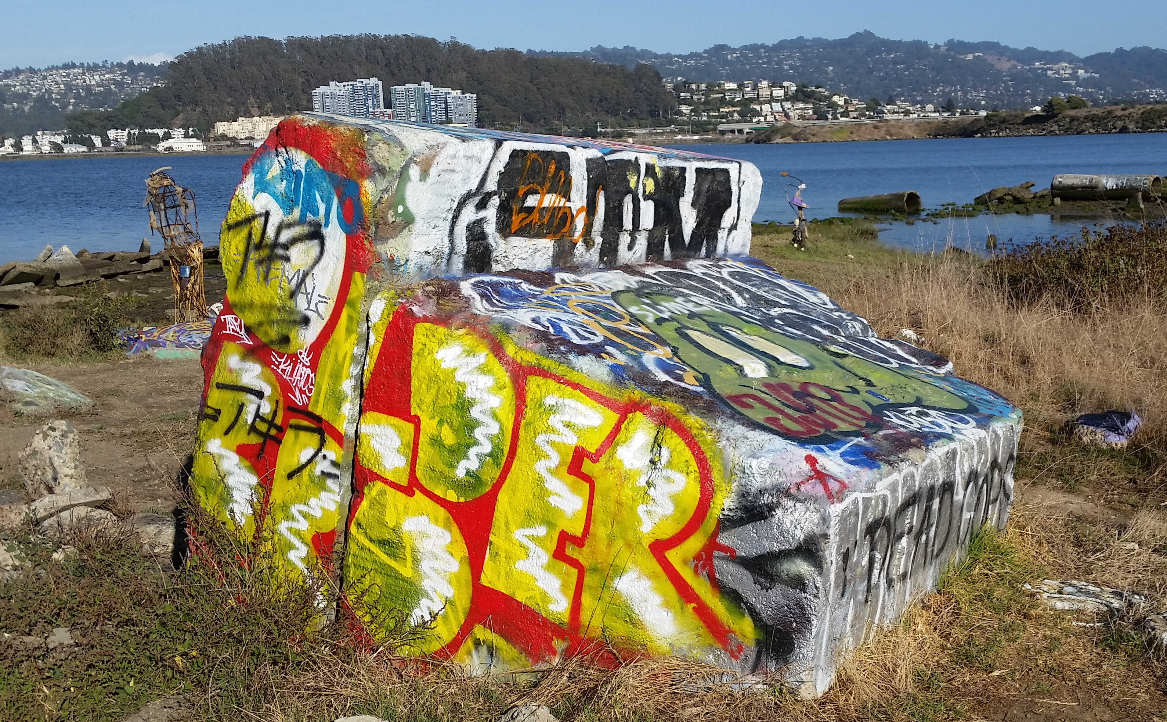 The Albany Bulb is a former landfill, jutting west from the east shore of San Francisco Bay, largely owned by the City of Albany. The Bulb is home to a vast array of urban art including mural, stencil, graffiti, sculpture, and installation art.
