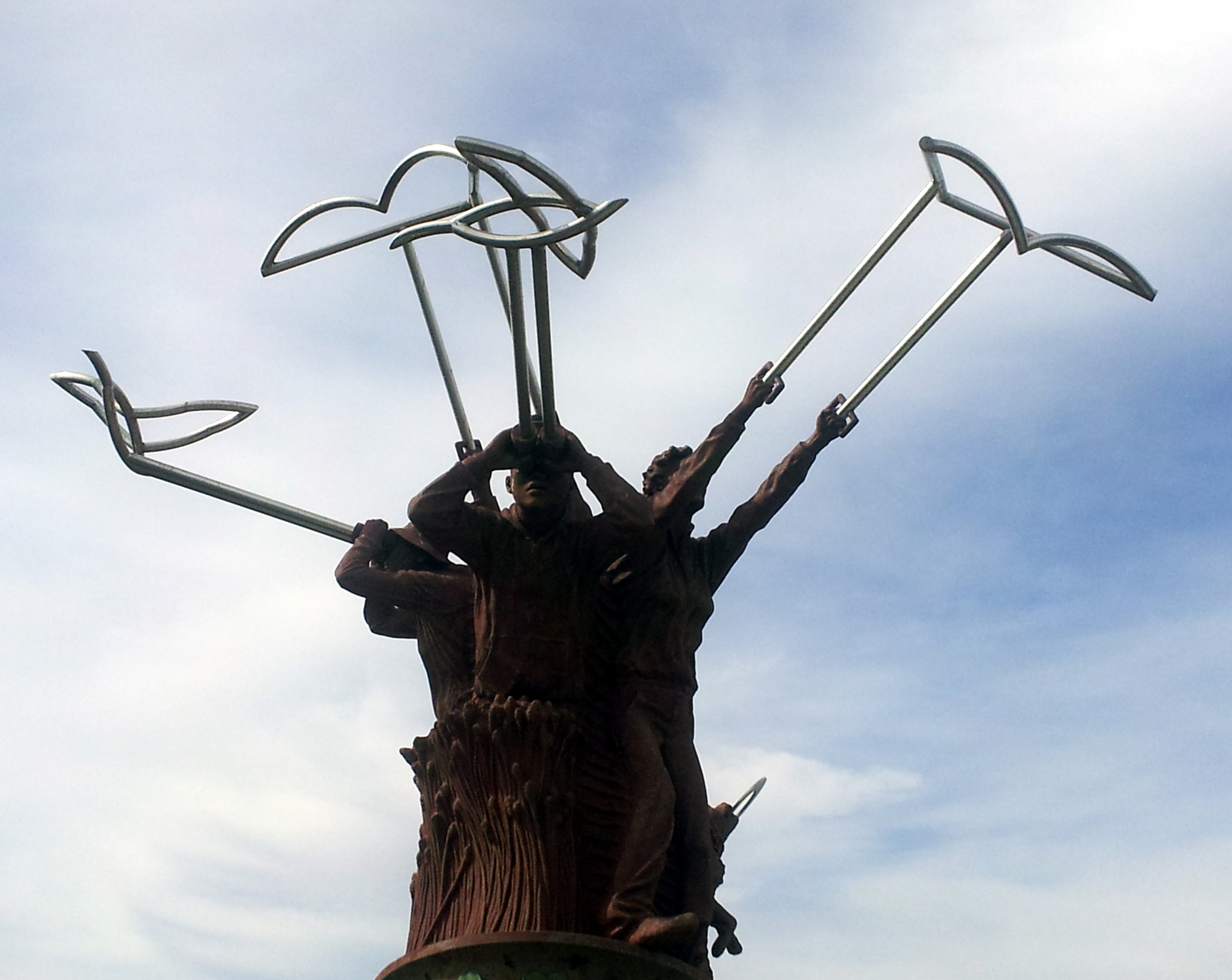 The artwork, titled “Berkeley Big People” by artist Scott Donahue was dedicated in 2008. Visible from about a mile in either direction, the 30-foot-tall fiberglass sculpture is the largest and most expensive piece of public art ever commissioned in the city.